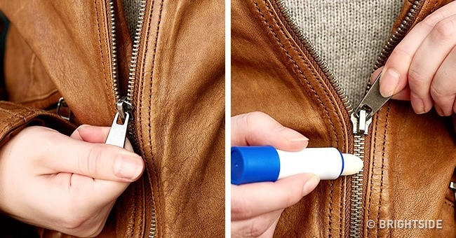 Son dưỡng môi có chứa dầu. Do đó để khóa kéo trơn tru hơn, hãy lấy chút son chà lên dây kéo áo.