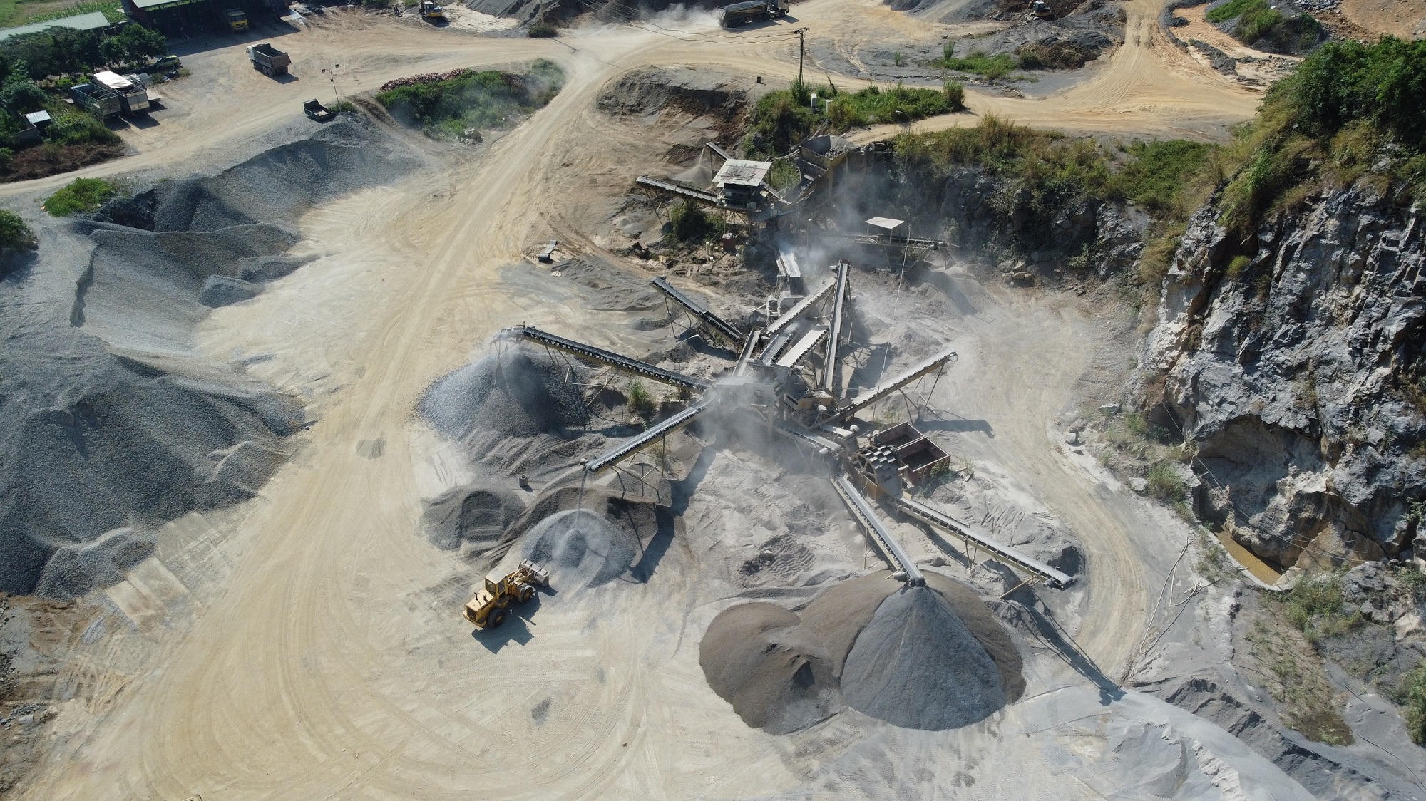 Trạm nghiền đá hoạt động bụi bốc lên mù mịt. |