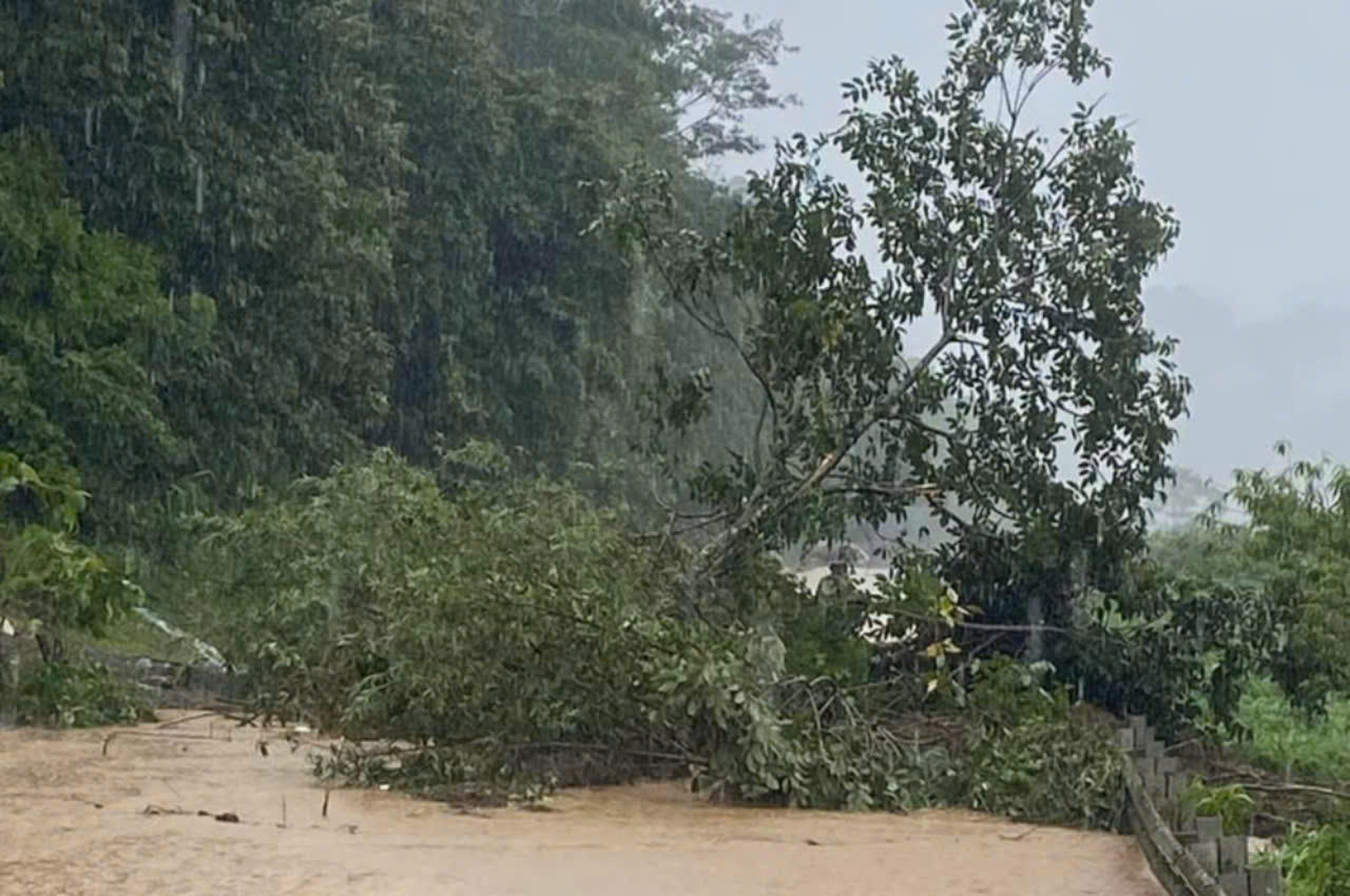 | Mưa lũ làm đổ cây cối gây ách tắc giao thông. |