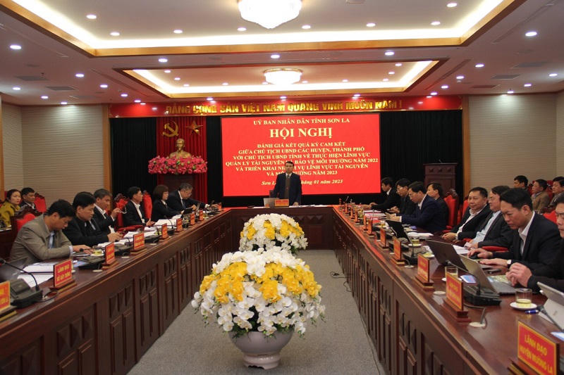 Ngày 11/1, UBND tỉnh Sơn La tổ chức Hội nghị đánh giá kết quả ký cam kết giữa Chủ tịch UBND các huyện, thành phố với Chủ tịch UBND tỉnh về thực hiện quản lý tài nguyên và bảo vệ môi trường năm 2022 và triển khai nhiệm vụ ngành TN&MT năm 2023.