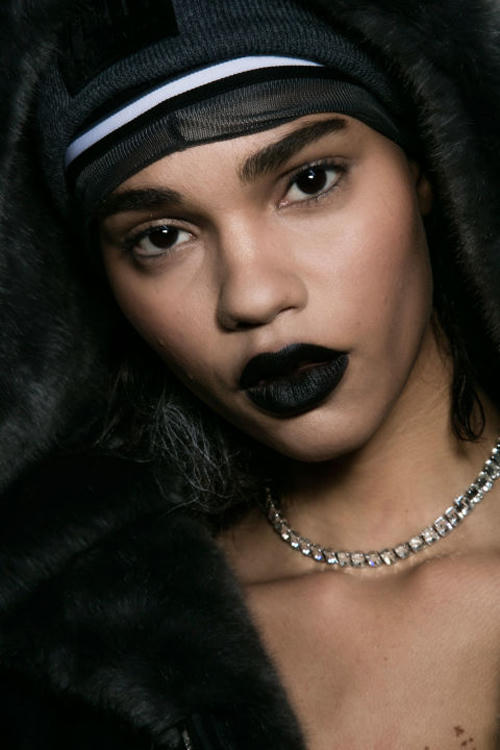 Người mẫu củaFenty X Puma gây ấn tượng mạnh mẽ với làn môi xanh đậm. |