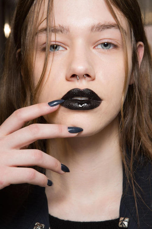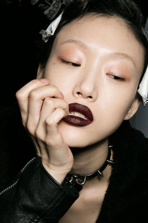 Các nhà mốt Dior, Marc Jacobs, Vivienne Westwood đều lăng xê những sắc son bầm, từ đỏ tía, xanh navy đến đen bóng như màu mực.