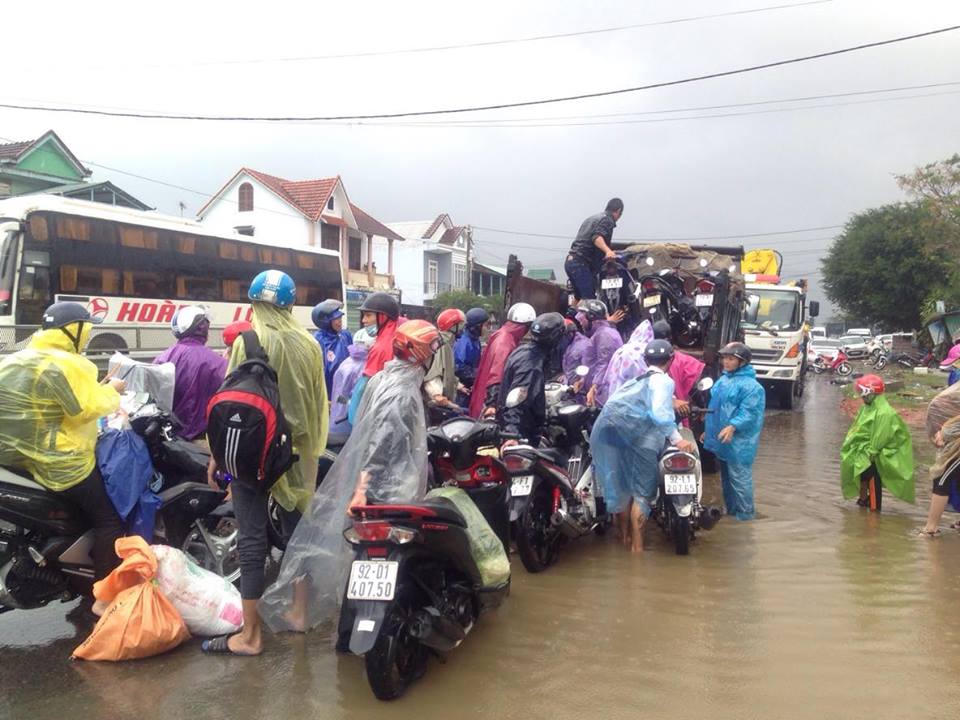 Trên quốc lộ 1A đoạn qua địa bàn thị xã Hương Thủy và huyện Phú Lộc xuất hiện nhiều điểm ngập lụt cục bộ gây ách tắc dài hơn 10km. Ngay lập tức lực lượng CSGT Công an tỉnh Thừa Thiên – Huế, phối hợp với Đội CSGT huyện Phú Lộc huy động tối đa lực lượng điều phối và hướng dẫn người và phương tiện đi qua các đoạn này.
