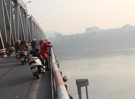 Sáng nay, nhiều người dân Hà Nội dừng trên cầu Chương Dương, Long Biên, Vĩnh Tuy... thả cá và tro hàng mã, đồng thời vứt theo túi nilon đựng tro, cá xuống sông. Người cẩn thận thì dừng xe, dốc cá xuống sông trước, bỏ túi sau. Nhưng có người "thả cho có" bằng cách đi xe chầm chậm rồi quăng vèo cả túi đựng cá bên trong xuống...