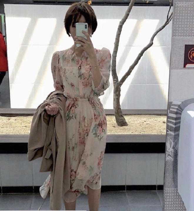 Có thể nói đây là chiếc váy may mắn nhất đầu năm 2018 khi được cả diễn viên Kim Nam Joo diện trong một cảnh phim Misty. Người đẹp khéo léo phối cùng áo cardigan màu hồng ton-sur-ton vừa sành điệu vừa ngọt ngào.