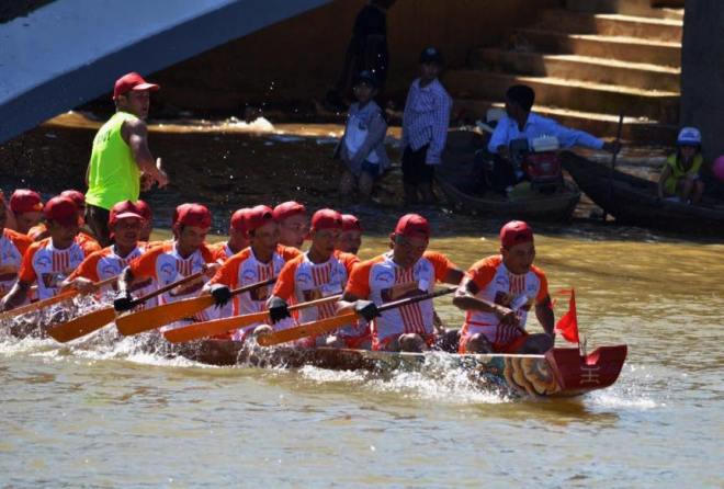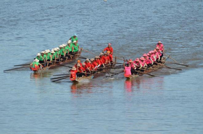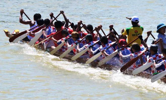 Sau tiếng lệnh, các tay chèo như gầm lên gồng mình lấy đà đẩy thuyền bật ra, lao tới hòa trong tiếng reo hò vang dội trên bờ…