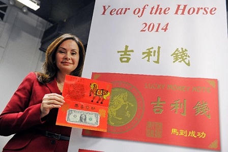 Đồng 1 USD Giáp Ngọ do Mỹ phát hành được bán chạy trong dịp cận năm mới. Sản phẩm này không khác gì những phong bao lì xì đỏ may mắn theo đúng truyền thống của một số nước châu Á. Điều đặc biệt của những phong bao lì xì “made in USA” chính là những tờ tiền 1 đô la Mỹ được đính sẵn bên trong. Xét về cả hình thức lẫn ý nghĩa thì đây được coi là lựa chọn hàng đầu cho quà lì xì “độc” năm nay.