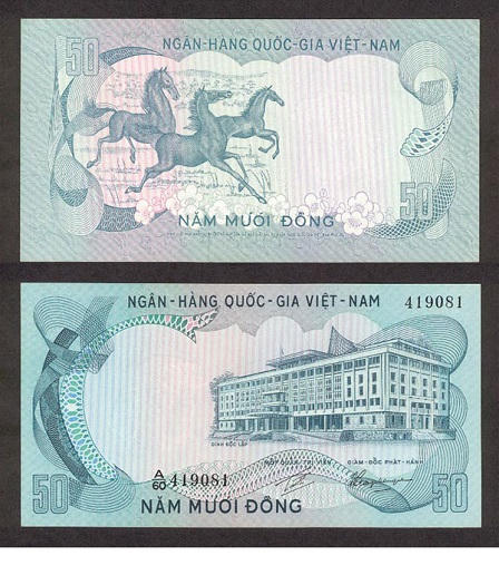 Tiền lì xì Tết VNCH 1972 với hình 3 con ngựa đang phi với tư thế dũng mãnh cũng là một lựa chọn cực kì độc đáo cho năm nay. Tết Nguyên đán 2014 là năm con ngựa nên những tờ tiền in hình ngựa rất có giá. Trong đó, loại tiền cổ 50 đồng của Việt Nam phát hành năm 1972 hiện được rao khá nhiều trên mạng với giá 80.000 – 100.000 đ/tờ với những tờ tiền mới và 50.000đ/tờ tiền cũ.
