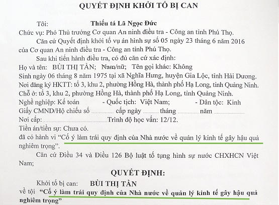 Tuy nhiên, tháng 7/2015, Vinapaco đã ban hành quyết định buộc ông Lê Quốc Thanh và bà Bùi Thị Tần phải trả cho Vinapaco số tiền gần 14 tỷ, bao gồm cả tiền gốc và lãi vì lý do hai cán bộ này cho tạm ứng nhưng không có tài sản đảm bảo dẫn đến “thất thoát tài sản”. Khi ông Thanh và bà Tần không thể trả khoản tiền này, Vinapaco đã đề nghị Cơ quan an ninh điều tra Công an tỉnh Phú Thọ khởi tố đối với ông Thanh, bà Tần về tội “cố ý làm trái các quy định về quản lý kinh tế gây hậu quả nghiêm trọng” cũng với lý do như trên.