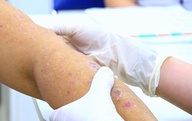 Bệnh nhân đến BV Da Liễu khi tay chân, thân mình xuất hiện nhiều mảng đỏ, sần sùi, da đầu ngứa ngáy, khó chịu, có những lớp vảy trắng, bong tróc… và được chẩn đoán mắc căn bệnh vảy nến.