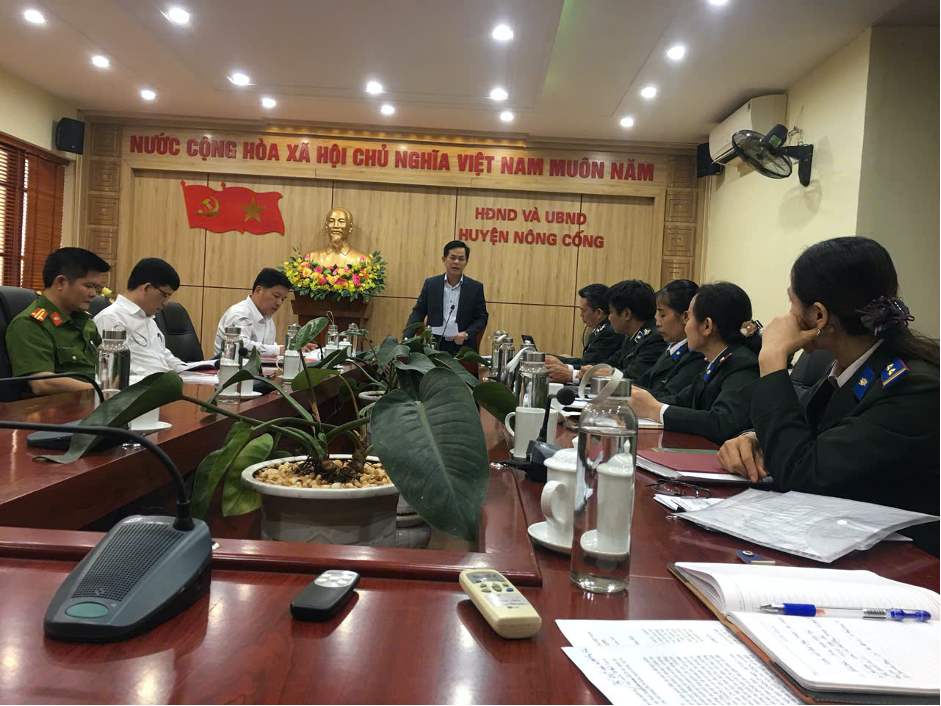 Một buổi họp bàn cưỡng chế vụ việc ông Sáu tại UBND huyện Nông Cống |