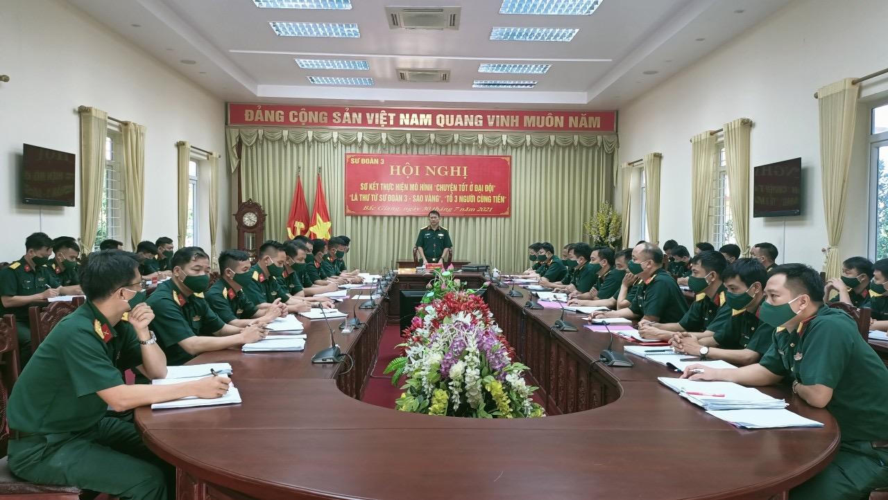 (PLVN) - Sáng ngày 30/7, Sư đoàn 3 (Quân khu 1) tổ chức sơ kết thực hiện mô hình “Chuyện tốt ở đại đội”, “Lá thư từ Sư đoàn 3 - Sao Vàng”, “Tổ 3 người cùng tiến” nhằm đánh giá toàn diện, sâu sắc kết quả công tác lãnh đạo, chỉ đạo, tổ chức thực hiện các mô hình trong học tập và làm theo tư tưởng, đạo đức, phong cách Hồ Chí Minh ở các cơ quan, đơn vị.