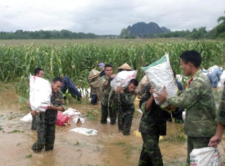 | Cán bộ, chiến sỹ Trung đoàn 335 tham gia thu hoạch Ngô nhân dân xã Hội Sơn, huyện Anh Sơn, tỉnh Nghệ An chạy lũ |