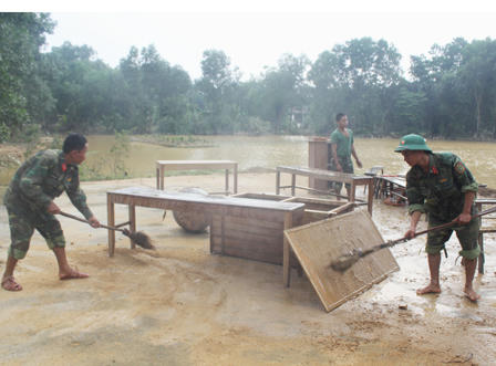 Với phương châm nước rút đến đâu, tổ chức cho bộ đội giúp nhân dân khắc phục hậu quả đến đó, ngay từ trưa nay, hơn 300 cán bộ, chiến sĩ 324 đã về các xã Hương Thủy, Gia Phố, Lộc Yên và Phương Mỹ nơi nước vừa rút để giúp đỡ nhân dân trước mắt tổng dọn vệ sinh các trường học.