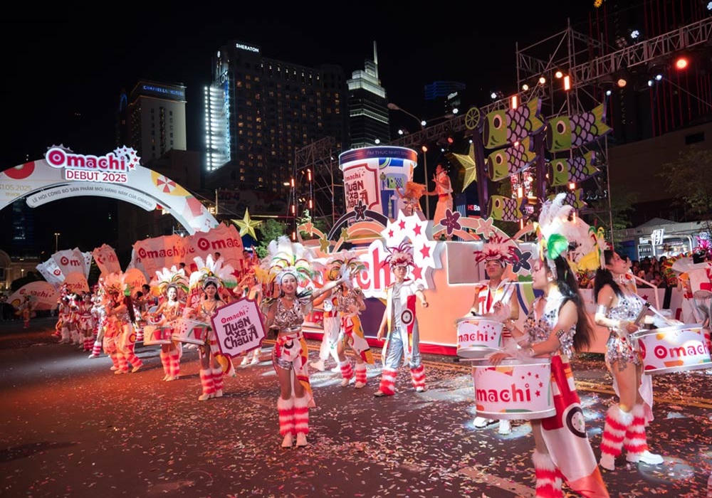 Chương trình diễu hành nghệ thuật “Omachi Debut 2025 – Quán Xá Châu Á” thu hút hàng chục nghìn người xem tại trung tâm quận 1 – TP.HCM với màn diễu hành hoành tráng đến từ 350 vũ công chuyên nghiệp, 5 xe diễu hành khổng lồ đại diện cho 5 món ngon đến từ 5 nước trong bộ sưu tập “Quán Xá Châu Á” mới của Omachi. Người xem được mãn nhãn khi tận mắt chứng kiến hàng chục bộ cánh khổng lồ sải bước cung đường Đại lộ Lê Lợi dài đến 250m, các tiết mục ánh sáng được dàn dựng công phu và màn bắn pháo giấy, pháo hoa rực rỡ sắc màu. Sự xuất hiện và trình diễn cực nóng bỏng của đại sứ thương hiệu HIEUTHUHAI khiến cho không khí tại “Omachi Debut 2025: Quán Xá Châu Á” bùng nổ hơn bao giờ hết.