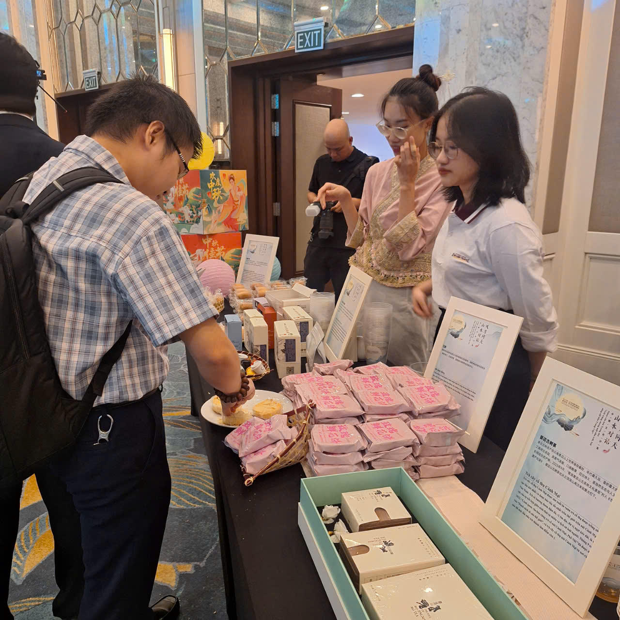 Thưởng thức bánh trung thu, trà, cà phê nổi tiếng của Trung Quốc (Ảnh: Thùy Dương). |
