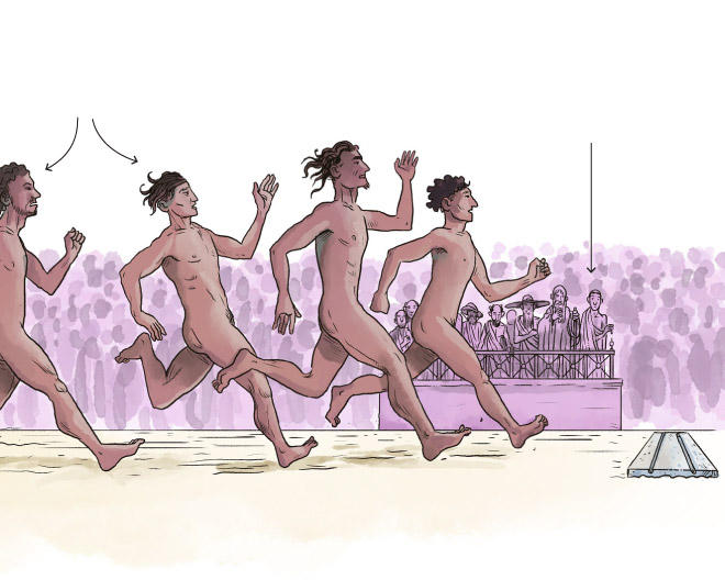 Sau khi người đưa tin rời đi, các thành phố bắt đầu cuộc tìm kiếm các vận động viên nam trẻ tuổi, với mục đích chọn ra những người xuất sắc nhất để đại diện cho họ tại lễ hội mùa hè danh giá ở Olympia. Sự tuyển chọn gắt gao đã có kết quả. Các giám khảo công bố tên của các vận động viên được chọn để đại diện cho thành phố trong Thế vận hội.