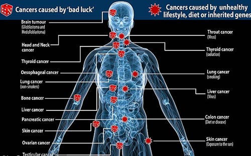 Hầu hết các trường hợp mắc ung thư bắt nguồn từ sự kém may mắn, hơn là do lối sống thiếu lành mạnh, chế độ dinh dưỡng hay gen di truyền, theo một nghiên cứu mới.