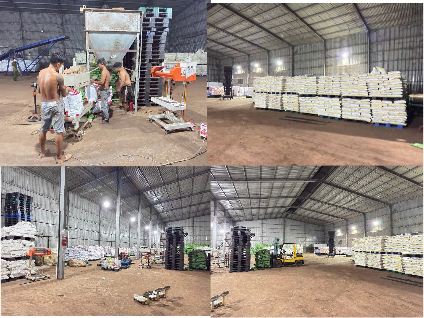 Tại hiện trường, lực lượng công an thu giữ gần 62 tấn phân bón đã thành phẩm, 230 tấn phân nguyên liệu, 11.500 bao phân giả, 260.000 vỏ bao bì in chữ Hàn Quốc, cùng hệ thống máy móc hiện đại phục vụ việc sang chiết, đóng gói và giả mạo nhãn hàng.