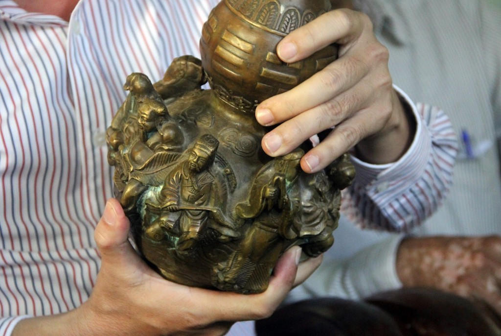 Ngày 9/2, có hai người đi ô tô mang kiểm soát có mã vùng 35 đến nhà ông Bay hỏi xem các món đồ vật trên rồi về, không đề cập đến số tiền mua hay giá trị cũng như niên đại của các đồ vật trên.