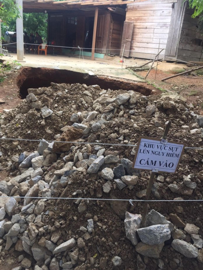 Theo Công an tỉnh Quảng Bình, khoảng 18h30 ngày 28/9, phía trước sân nhà chị Đinh Thị Vân ở thôn Thanh Long, xã Hóa Thanh, huyện Minh Hóa, tỉnh Quảng Bình xảy ra sụt lún đất, tạo hố sâu khoảng 3m, miệng hố hình e-líp.