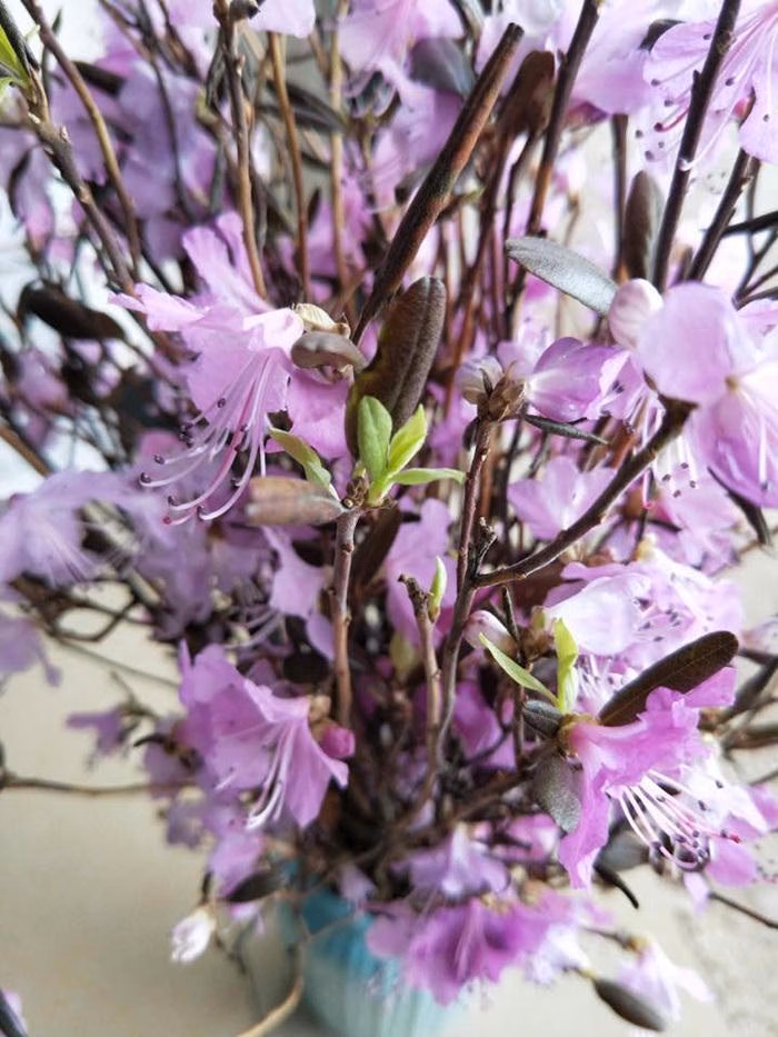 Bên ngoài, cành hoa đỗ quyên ngủ đông nhìn giống không khác gì những cành củi khô.