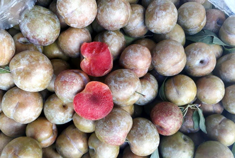 | Thoạt nhìn mận này khá giống mận tam hoa Việt Nam nhưng màu nhạt hơn, ăn chua hơn |
