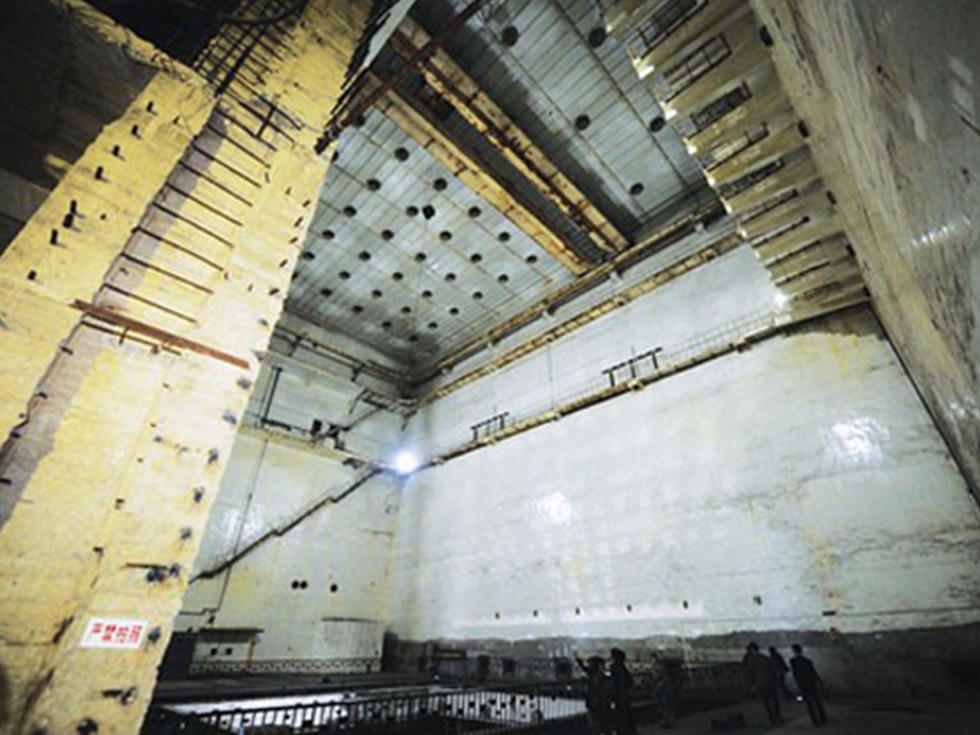Để xây dựng công trình, cả quả núi đã bị khoét rỗng tạo thành hang động có 9 tầng với độ cao tổng thể 79.6m, tổng chiều dài 21km. Gian chính đặt Lò phản ứng có diện tích 13 ngàn m2; tổng số 1 triệu 510 ngàn m3 đá đã được đào và đưa ra, nếu xếp số đá đó thành một bức tường tiết diện 1m2 thì có chiều dài tới 1.500km.