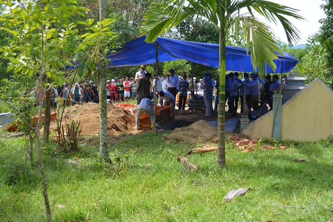 Đến 8h, đoàn công tác gồm đại diện Công an tỉnh Quảng Nam, Trung tâm pháp y tỉnh Quảng Nam, VKSND tỉnh Quảng Nam, Công an huyện Tiên Phước cùng công an xã Tiên Ngọc đã tiến hành khai quật mộ và khám nghiệm tử thi chị Đông. Việc khám nghiệm được diễn ra trước sự chứng kiến của rất đông người dân và người thân hai bên gia đình chị Đông, anh Chánh.