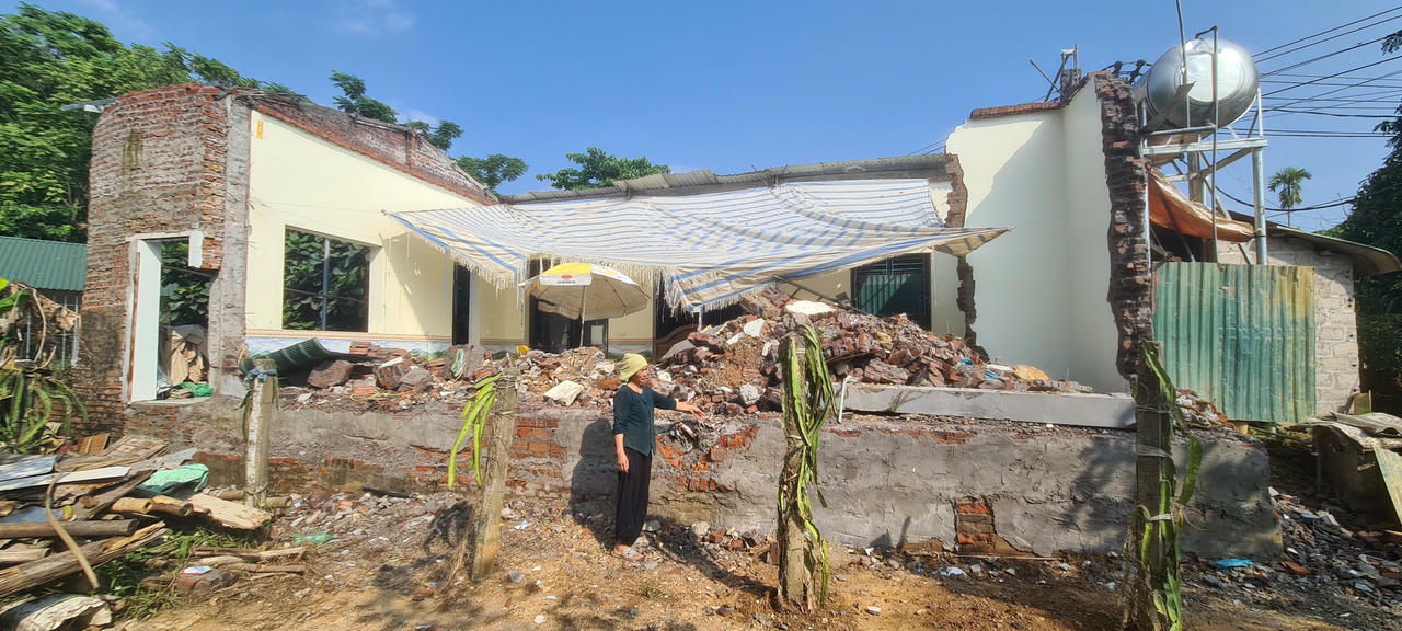 Ngày 5/5/2023, bà Mỉa nhận được Quyết định 94/QĐ-CCXD của UBND xã về việc cưỡng chế, buộc khắc phục hậu quả trên lĩnh vực đất đai; nêu rõ: Sau 10 ngày (đến 16/5/2023), nếu gia đình không tự phá dỡ toàn bộ công trình nhà ở thì sẽ bị cưỡng chế. Ngày 22/5/2023, địa phương tiến hành cưỡng chế, tháo dỡ căn nhà.