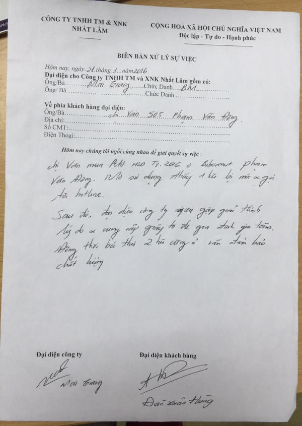 Tiếp đó, PV đã liên hệ làm việc với chị Dương Mai Trang – trưởng phòng Marketing công ty TNHH TM & XNK Nhất Lâm. Chị Trang cho biết, bên Nhất Lâm cũng đã nhận được phản ánh phía khách hàng. “Ngày 21/1 đại điện bên công ty đã qua nhà anh Hùng để tiếp nhận vụ việc, tình trạng một hộp sữa bị mốc là có”.