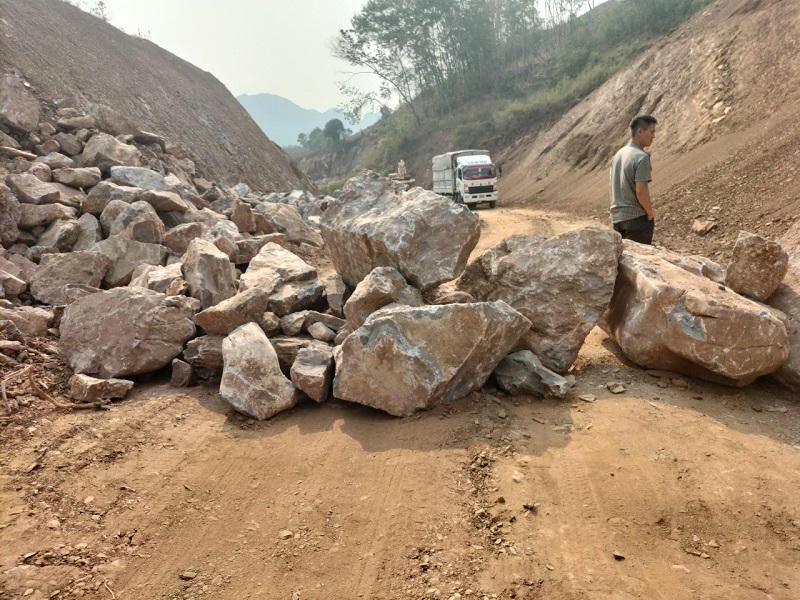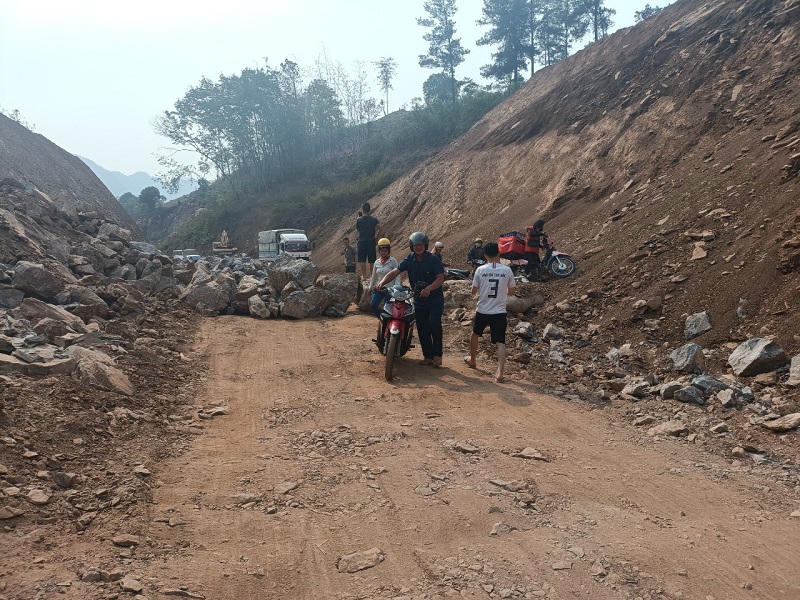 Đất, đá chắn ngang đường khiến người và phương tiện không thể di chuyển qua. |