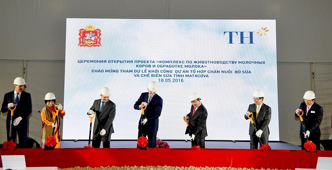 Ngày 18/5/2016, tại quận Volokolamsk, tỉnh Moscow (Liên bang Nga), trước sự chứng kiến của Thủ tướng Nguyễn Xuân Phúc, Phó Thủ tướng, Bộ trưởng Bộ ngoại giao Phạm Bình Minh, Bộ trưởng Bộ Nông Nghiệp Liên Bang Nga Nikolay Fyodorov, Thống đốc tỉnh Moscow Andrey Vorobiev Iu và lãnh đạo các bộ, ngành của 2 nước, cùng đại diện sứ quán 15 nước trong đó có 10 sứ quán của 10 nước ASEAN, Tập đoàn TH đã phối hợp với chính quyền tỉnh Moscow khởi công Dự án Tổ hợp chăn nuôi bò sữa và chế biến sữa giai đoạn 1 của tập đoàn này tại Nga.
