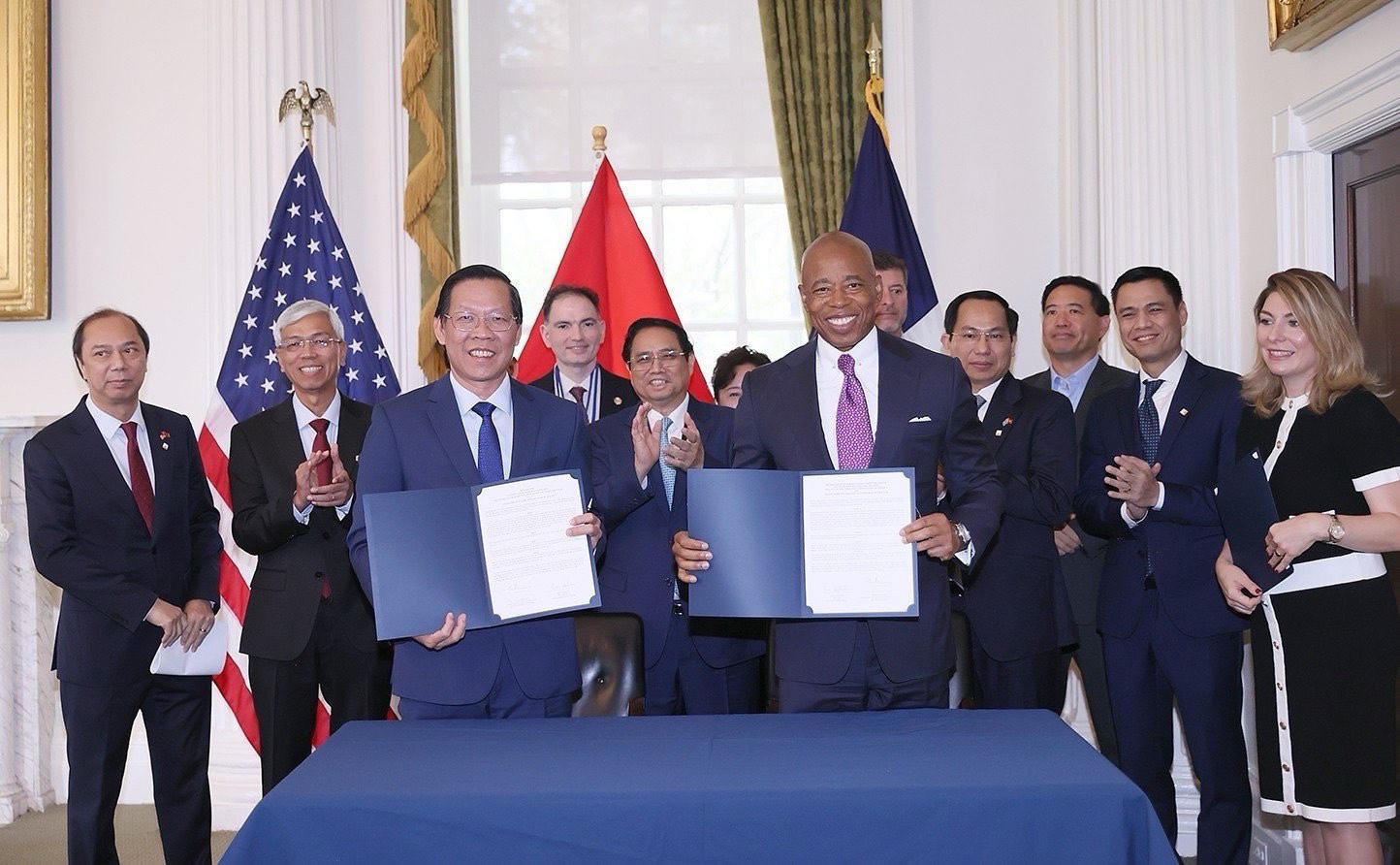 TP Hồ Chí Minh ký kết biên bản ghi nhớ về hợp tác phát triển với TP New York. (Ảnh: Thảo An). |