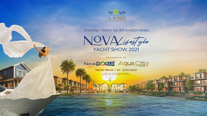 Tiếp nối chuỗi sự kiện Tri ân khách hàng năm 2021, Tập đoàn Novaland giới thiệu Nova Lifestyle Yacht Show tại Bến du thuyền Bình Khánh, 26 Mai Chí Thọ, quận 2, TP.HCM từ ngày 30 - 31/1/2021. Chương trình với sự góp mặt của nhiều nghệ sĩ nổi tiếng cùng các BST thời trang đẳng cấp của các NTK hàng đầu.