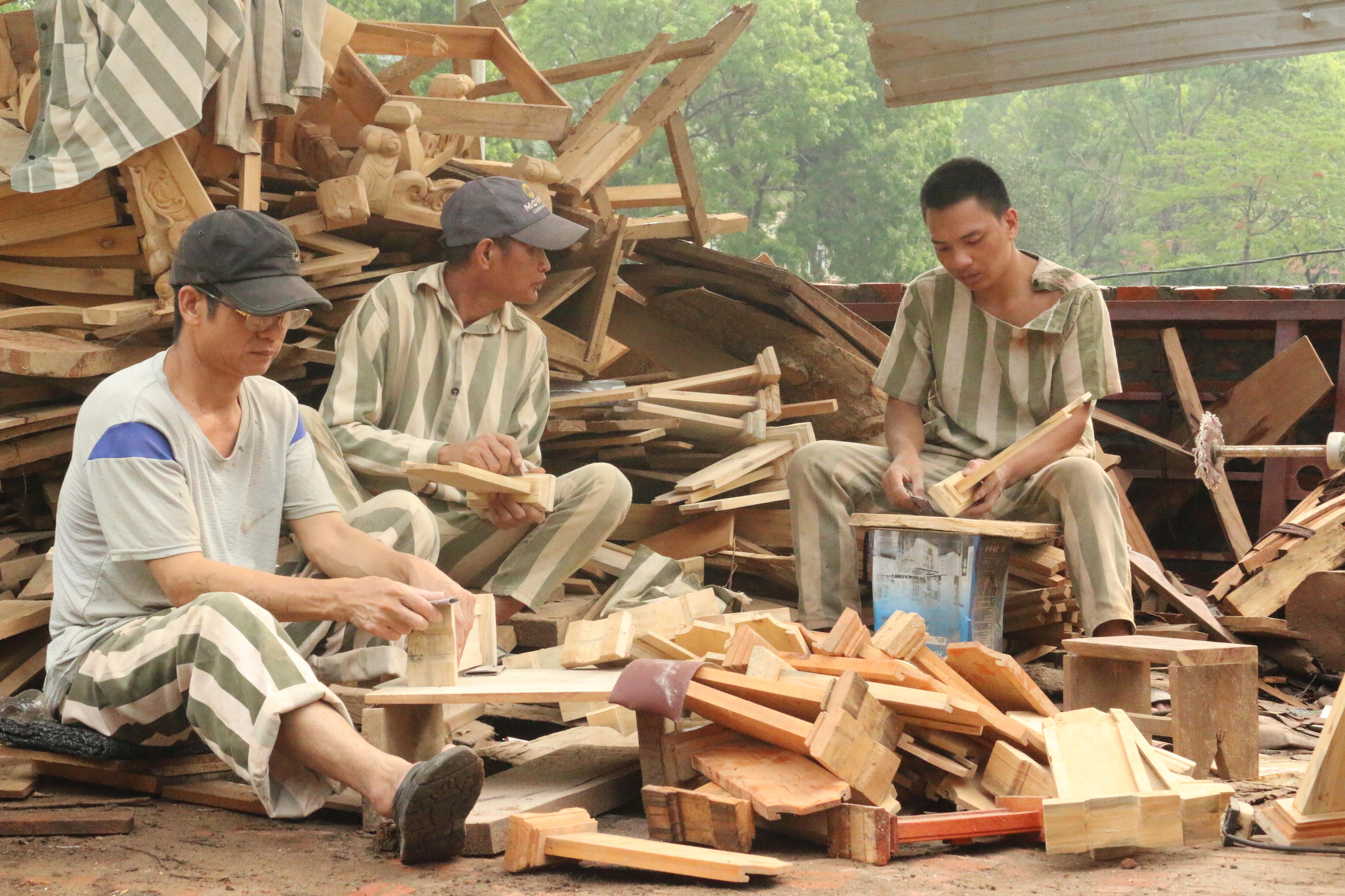 Phạm nhân học nghề làm mộc. Ảnh: Ngọc Nga |
