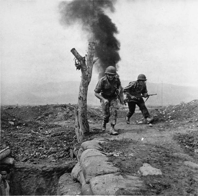 Chúng tôi từ từ tiến theo hàng một, người sau cách người trước một mét. Một con đường mòn dốc ngược dẫn thẳng lên đỉnh núi. Chúng tôi leo lên và rơi vào một vị trí đã xây dựng các công sự chiến đấu mà Việt Minh vừa mới bỏ đi, dấu vết để lại hãy còn tươi rói.