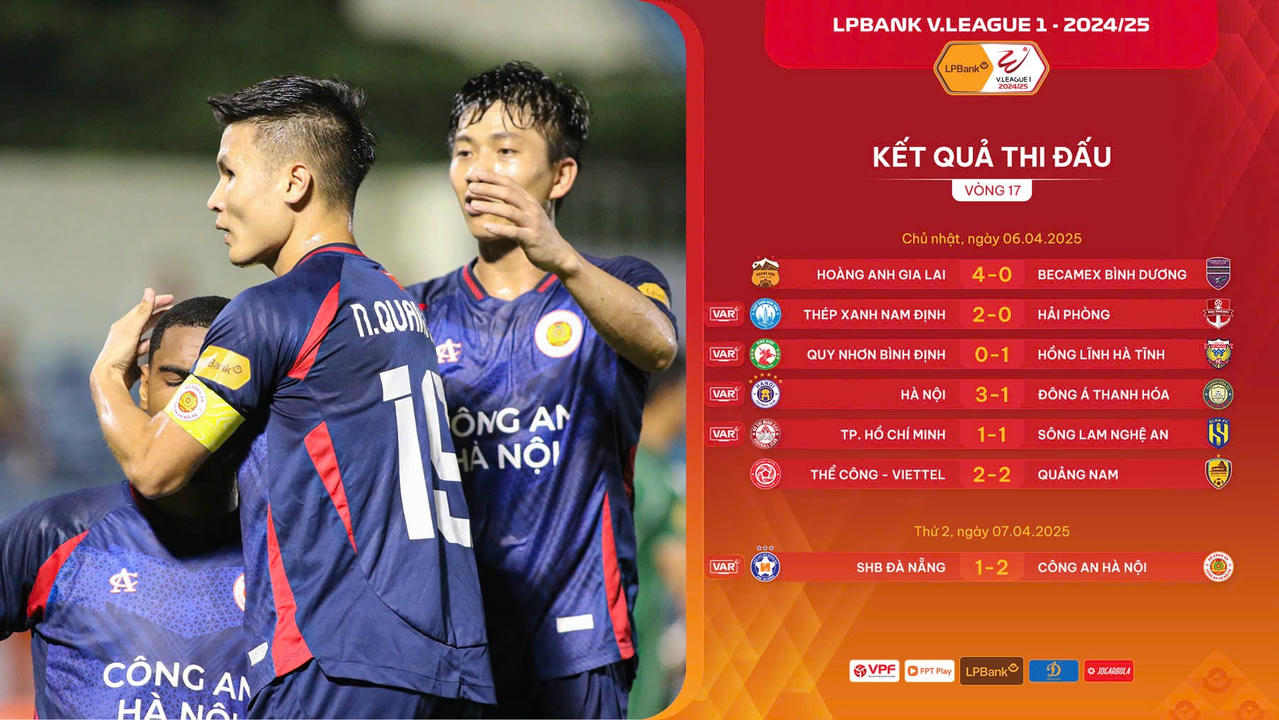 Vòng 17 V.League 2024/25 đã rất nóng ngay ngày trở lại. Công an Hà Nội và Hồng Lĩnh Hà Tĩnh đều có chiến thắng trên sân khách trước Đà Nẵng và Bình Định. Trong khi đó Sông Lam Nghệ An và Quảng Nam cũng có 1 điểm khi chia tay CLB TPHCM và Thể Công. 3 đội khách thất bại là Bình Dương, Hải Phòng và Thanh Hoá.