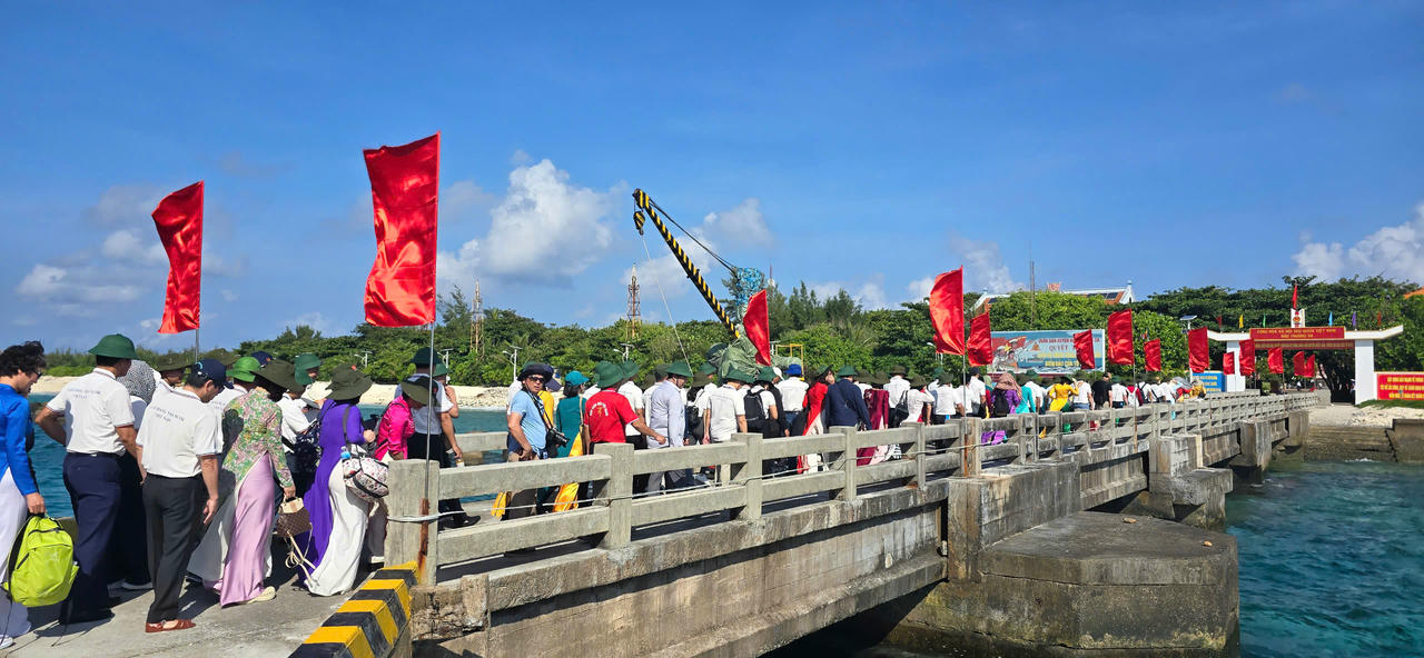 Suốt hải trình chúng tôi có dịp ngang qua, từ Song Tử Tây, Sinh Tồn đến Cô Lin, Đá Thị, Len Đao, Trường Sa lớn…đều khoác lên mình diện mạo mới. Nhất là trong những ngày tháng 4 lịch sử, kỷ niệm 50 năm ngày giải phóng quần đảo Trường Sa và các ngày lễ lớn của đất nước. Khắp nơi trên quần đảo Trường Sa đều phủ thắm sắc đỏ của Cờ Tổ quốc, là không khí hân hoan, tươi vui, phấn khởi của quân và dân trên đảo, là niềm vinh dự, tự hào hiển hiện trên gương mặt của những đại biểu trên các chuyến tàu khi được từ đất liền ra đảo. Họ hiểu rằng, ở nơi muôn trùng sóng gió, đang có những con người dành một phần thanh xuân của mình để giữ gìn vững chắc thành đồng Tổ quốc trên biển.