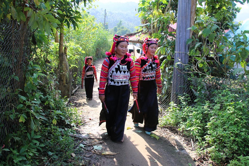 Phụ nữ dân tộc Hà Nhì ở xã Sín Thầu trong trang phục truyền thống. |