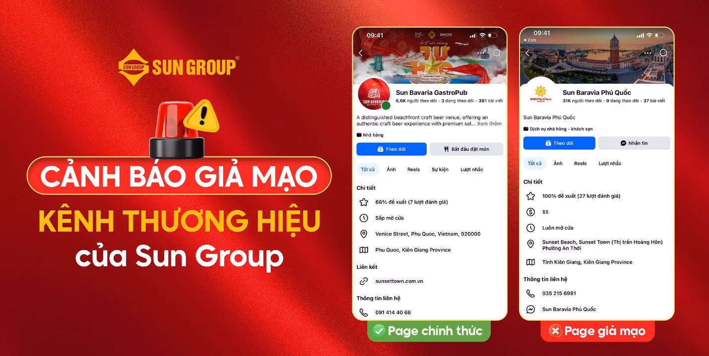 Từ cuối năm 2023 đến nay, Sun Group ghi nhận sự xuất hiện của hàng trăm kênh mạo danh Tập đoàn và các thương hiệu thành viên ở mảng kinh doanh du lịch nghỉ dưỡng, vui chơi giải trí và tuyển dụng. Các đối tượng này không chỉ lạm dụng công nghệ để lừa đảo tiền cọc, đánh cắp dữ liệu khách hàng mà còn lập website, fanpage chứa các nội dung bất hợp pháp. Các fanpage giả thường dùng tên gọi gần giống hệ thống chính thức, sao chép hình ảnh, logo, nội dung từ kênh thật, thậm chí đăng lại bài viết gần như đồng thời để tạo cảm giác “cập nhật”.