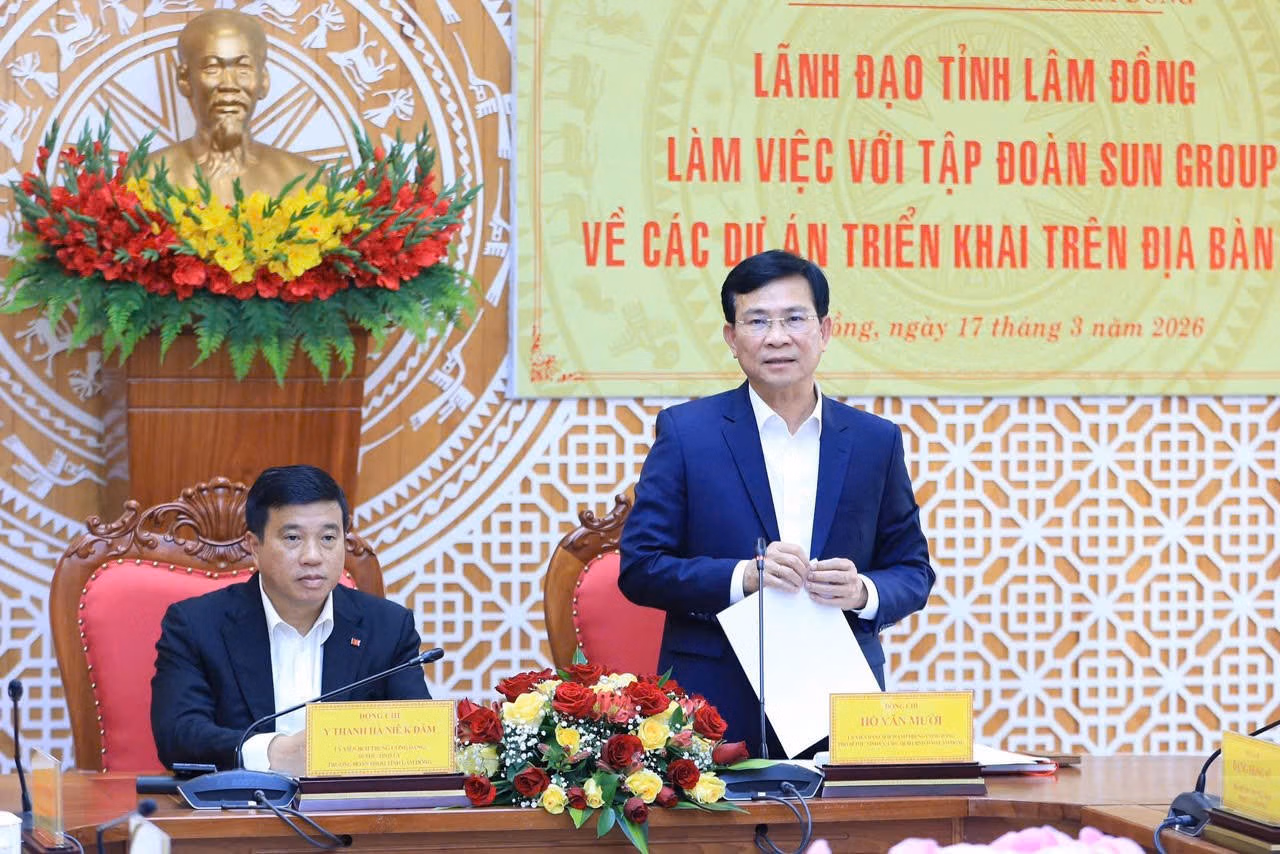 Chủ tịch Lâm Đồng Hồ Văn Mười đề nghị các sở, ngành, địa phương liên quan tập trung triển khai quyết liệt các dự án trọng điểm của Tập đoàn Sun Group trên địa bàn tỉnh. Đây là cơ hội rất lớn để tỉnh Lâm Đồng thể hiện rõ cam kết, trách nhiệm trước Đảng và Nhà nước, trước cộng đồng doanh nghiệp về quyết tâm của tỉnh trong giai đoạn mới.