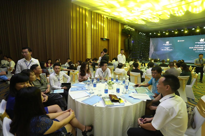 Bà Đinh Vân Anh, Giám đốc kinh doanh sàn bất động sản Quảng Ninh Land - một trong các đơn vị phân phối chính thức sản phẩm cho biết, đây là sự kiện được thị trường Quảng Ninh đón chờ từ lâu. Chỉ tính riêng lượng khách đăng ký qua sàn Quảng Ninh Land, ngoài hơn 200 nhà đầu tư sinh sống trên địa bàn còn có hàng trăm nhà đầu tư tới từ Hà Nội và TP Hồ Chí Minh. Cùng với đó, số lượng khách hàng đăng ký dự sự kiện qua các sàn còn lại cũng rất lớn khiến hội trường lớn khách sạn 5 sao Wyndham Legend Ha Long sáng 1/7 chật kín.