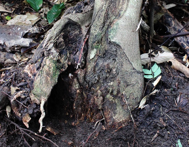 Những gốc cây dó bầu nằm ẩn mình trong rừng rậm mang trên mình những miệng trầm bề thế của anh Thanh trong thời điểm hiện tại, nếu bán ra thị trường sẽ có giá khoảng 30 đến 40 triệu đồng.