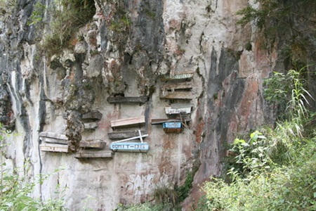 Cộng đồng người Igorot ở Sagada, Philiipines có kiểu mai táng rất độc đáo từ 2000 năm trước. Những người chết sẽ được đưa vào quan tài và treo lơ lửng trên các vách núi dọc theo thung lũng Echo. Đặc biệt, những chiếc quan tài có kích thước rất ngắn, thường chỉ khoảng 1m. Bởi vậy, thậm chí người Igorot phải bẻ xương người đã khuất để cho lọt vào trong quan tài.