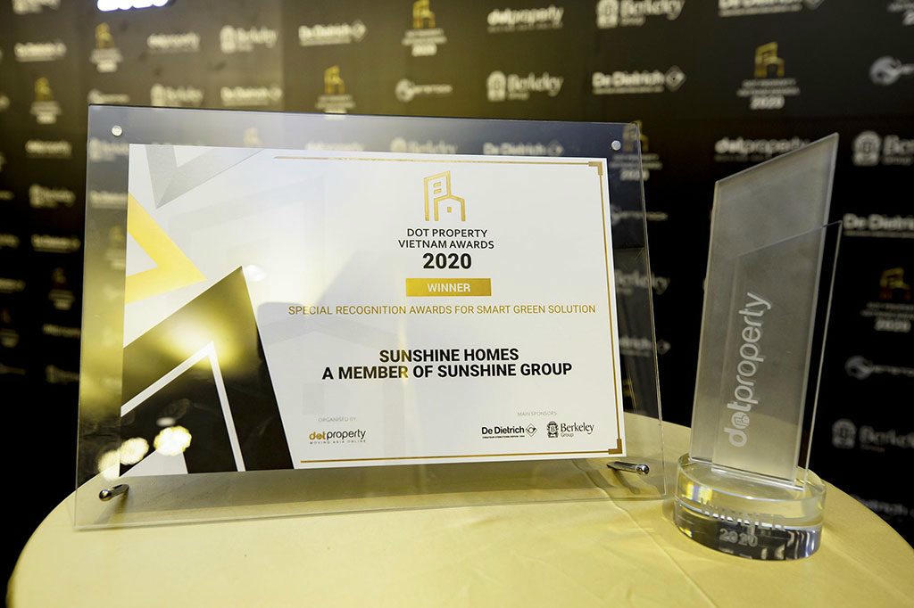 Trong khuôn khổ giải thưởng DOT Property Vietnam Awards 2020, Sunshine Homes và dự án của mình cùng lúc được vinh danh tại hạng mục về xu hướng xanh. Nếu Sunshine Homes được giới chuyên gia và những người quan tâm đề cao với “Giải thưởng công nhận đặc biệt cho giải pháp Xanh – thông minh 2020” thì Sunshine Crystal River – một sản phẩm của Sunshine Homes lại được xướng danh là “Tổ hợp biệt thự trên không xu hướng xanh tốt nhất Việt Nam 2020”.