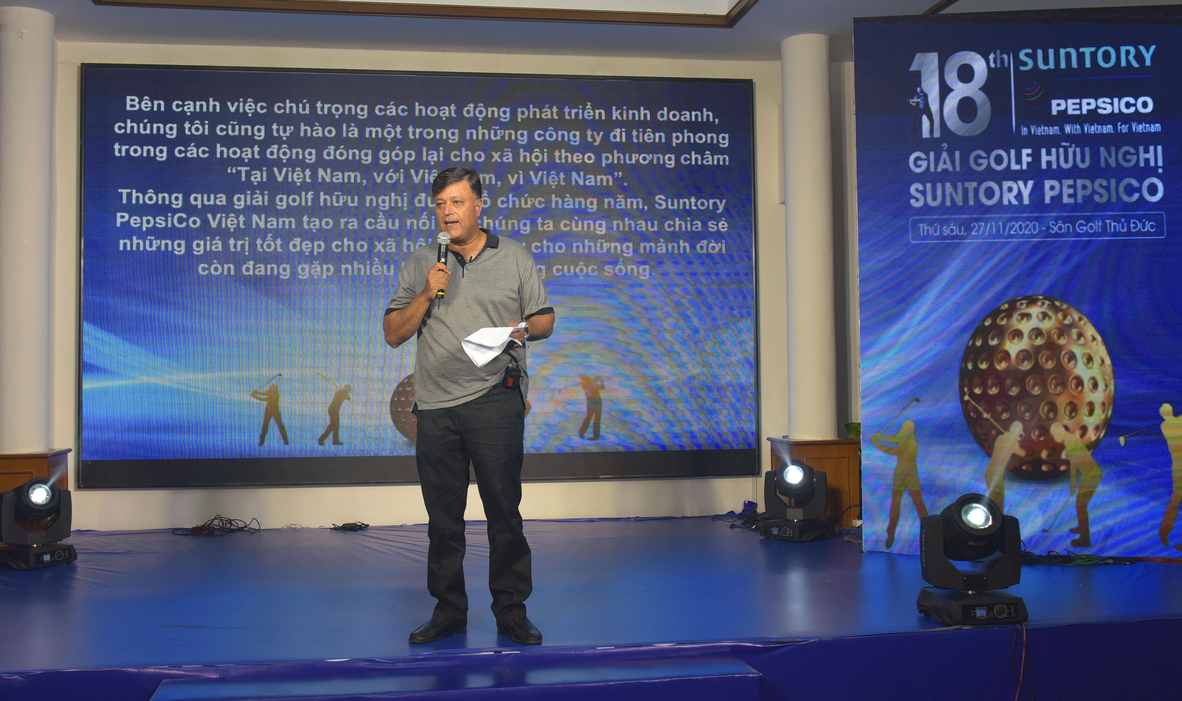 Vì vậy, chúng tôi có trách nhiệm đóng góp cho sự phát triển của cộng đồng nơi đã giúp nuôi dưỡng, phát triển công việc kinh doanh của mình. Với tinh thần đó, Giải Gôn Hữu Nghị Suntory PepsiCo được tổ chức hàng năm là dịp để chúng ta kết nối và chia sẻ các giá trị tốt đẹp cũng như chung tay đóng góp cho cộng đồng”.