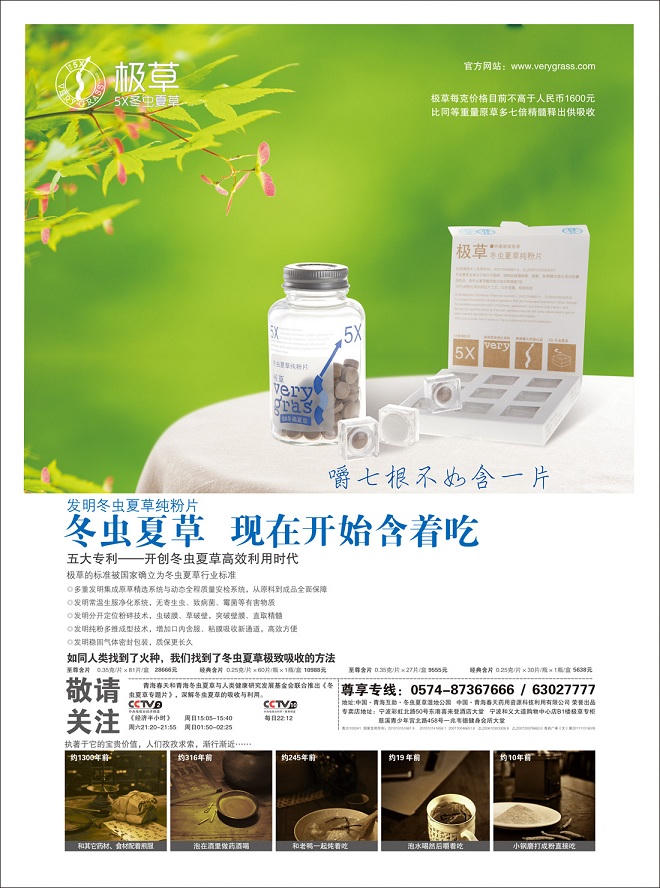 (PLO) -Trong ma trận quảng cáo long trời lở đất, thì ngôn từ “Đông trùng Hạ thảo ngậm ăn” quảng đại công chúng đều biết. Một nguồn gần gũi với Thanh Hải Xuân Thiên cho biết: khi sản phẩm “Cực Thảo” mới được tung ra đã xác định sách lược dùng quảng cáo để lôi kéo, tạo lập lượng tiêu thụ.