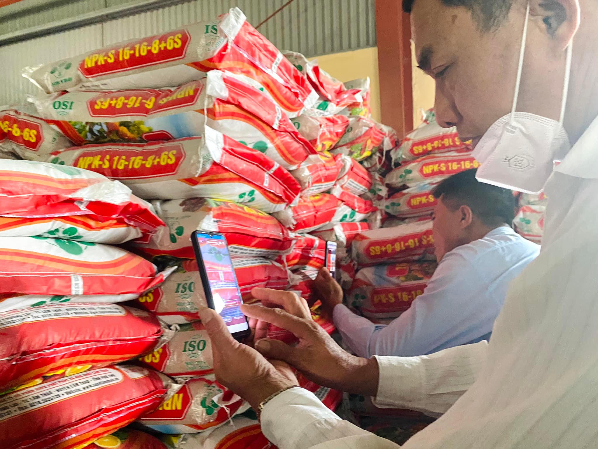 | Việc quét mã QR-code trên bao bì đã trở nên quen thuộc đối với khách hàng khi mua phân bón của Supe Lâm Thao |
