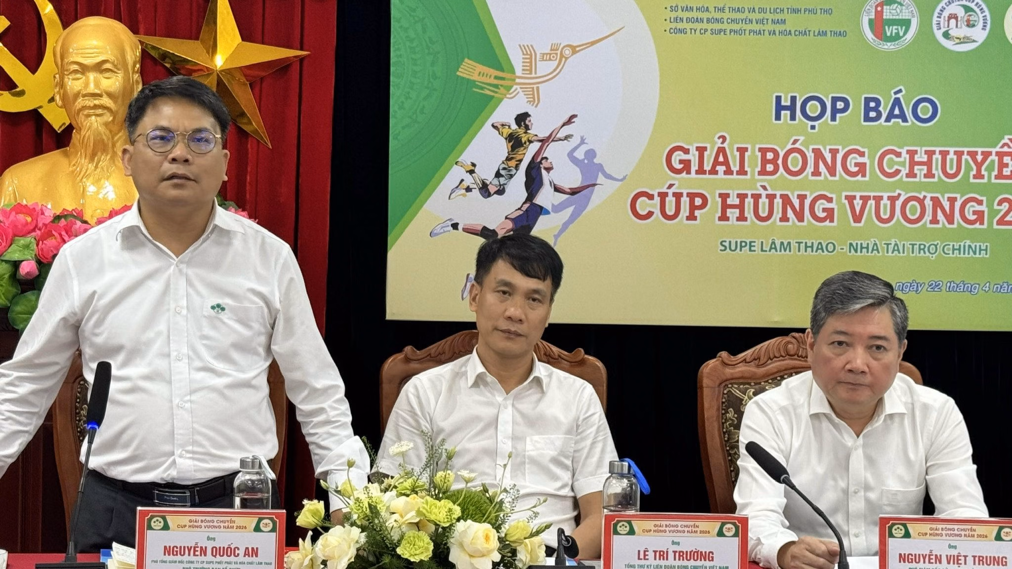 Chiều 22/4, Sở Văn hóa, Thể thao và Du lịch tỉnh Phú Thọ tổ chức họp báo Giải bóng chuyền Cúp Hùng Vương năm 2026. Giải đấu không chỉ là điểm nhấn trong chuỗi hoạt động Giỗ Tổ Hùng Vương – Lễ hội Đền Hùng mà còn ghi dấu sự đồng hành của doanh nghiệp địa phương, trong đó nổi bật là Công ty Cổ phần Supe Phốt phát và Hóa chất Lâm Thao với vai trò nhà tài trợ chính.
